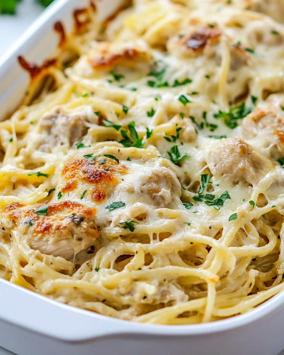 - Garnish with chopped fresh parsley if desired before serving. This adds a fresh touch and enhances the presentation of your Classic Chicken Tetrazzini Recipe Made From Scratch.
