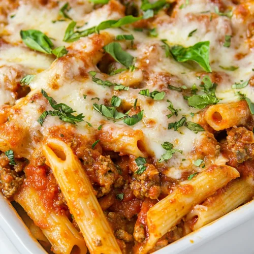 The Comforting Homemade Baked Ziti Recipe is a classic Italian-American dish that embodies warmth and satisfaction in every bite. This baked pasta dish features layers of ziti noodles, rich marinara sauce, and a blend of cheeses that melt into a gooey, savory delight. Perfect for weeknight dinners or family gatherings, this recipe caters to everyone, making it a go-to choice for busy parents and pasta lovers alike. With its robust flavors, hearty texture, and cheesy goodness, the Comforting Homemade Baked Ziti Recipe is sure to bring smiles to your table and create lasting memories.