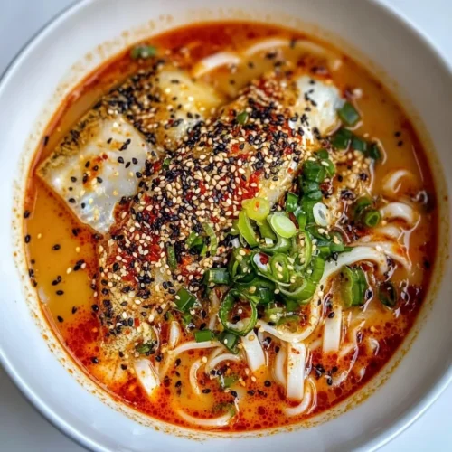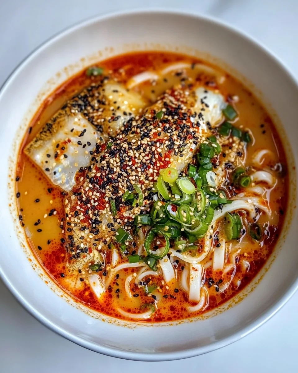 Creamy Gochujang Udon Soup with Fresh Fish is a delectable fusion dish that brings together the richness of creamy broth and the spicy kick of gochujang, a Korean chili paste. This soup is a perfect choice for weeknight meals, family gatherings, or even cozy nights in, as it captures a variety of flavors and textures. The smooth udon noodles serve as the base, while the fresh fish adds a touch of elegance and heartiness to the dish. With the balance of creaminess and spice, this unique soup is sure to please both adventurous eaters and those who appreciate comfort food. The standout quality of Creamy Gochujang Udon Soup with Fresh Fish lies in its ability to adapt to different palates, making it a versatile option for anyone looking to explore Asian cuisine.