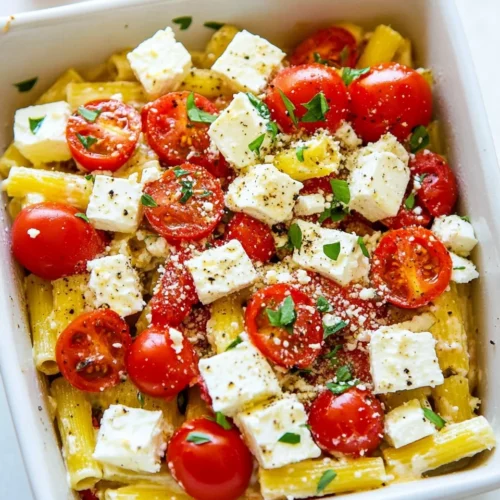 Creamy Homemade Baked Feta Pasta Delight is a culinary masterpiece that combines the rich flavors of baked feta cheese with perfectly cooked pasta. This dish offers an exceptional balance of creaminess and tanginess, making it a favorite among pasta lovers. Ideal for weeknight meals or family gatherings, this recipe is simple yet impressive, sure to please both adults and children alike. It stands out for its vibrant colors and inviting aroma, making it a visually appealing centerpiece for any table. The combination of wholesome ingredients creates a comforting experience that warms the heart and satisfies the palate.