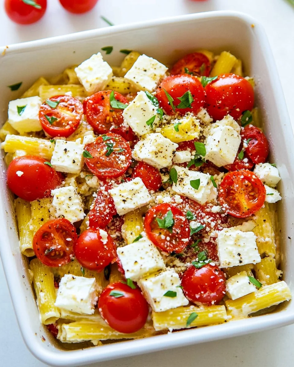 Creamy Homemade Baked Feta Pasta Delight is a culinary masterpiece that combines the rich flavors of baked feta cheese with perfectly cooked pasta. This dish offers an exceptional balance of creaminess and tanginess, making it a favorite among pasta lovers. Ideal for weeknight meals or family gatherings, this recipe is simple yet impressive, sure to please both adults and children alike. It stands out for its vibrant colors and inviting aroma, making it a visually appealing centerpiece for any table. The combination of wholesome ingredients creates a comforting experience that warms the heart and satisfies the palate.