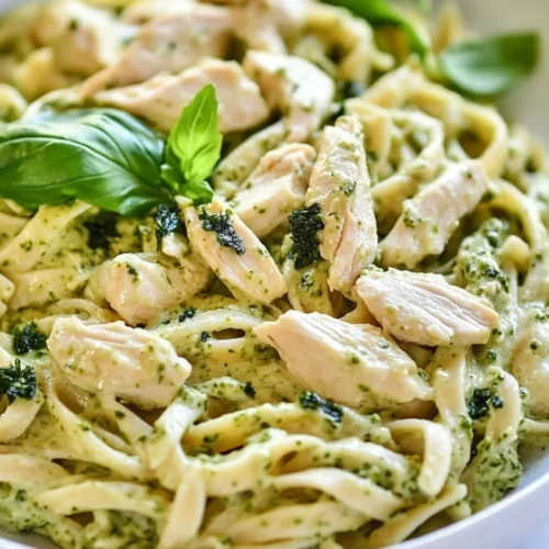 Creamy Homemade Chicken Pesto Pasta is a comforting and delicious dish that combines the richness of creamy sauce with the vibrant flavors of fresh pesto and tender chicken. This dish is perfect for weeknight meals or family gatherings, appealing to both adults and kids alike. The combination of al dente pasta, succulent chicken, and the aromatic notes of basil creates a symphony of flavors that elevate any dining experience. The standout quality of this recipe is its ease of preparation, allowing even novice cooks to create a restaurant-quality meal at home. With just a few simple ingredients, Creamy Homemade Chicken Pesto Pasta becomes a hearty, satisfying, and quick option for lunch or dinner, making it a go-to recipe for busy families.