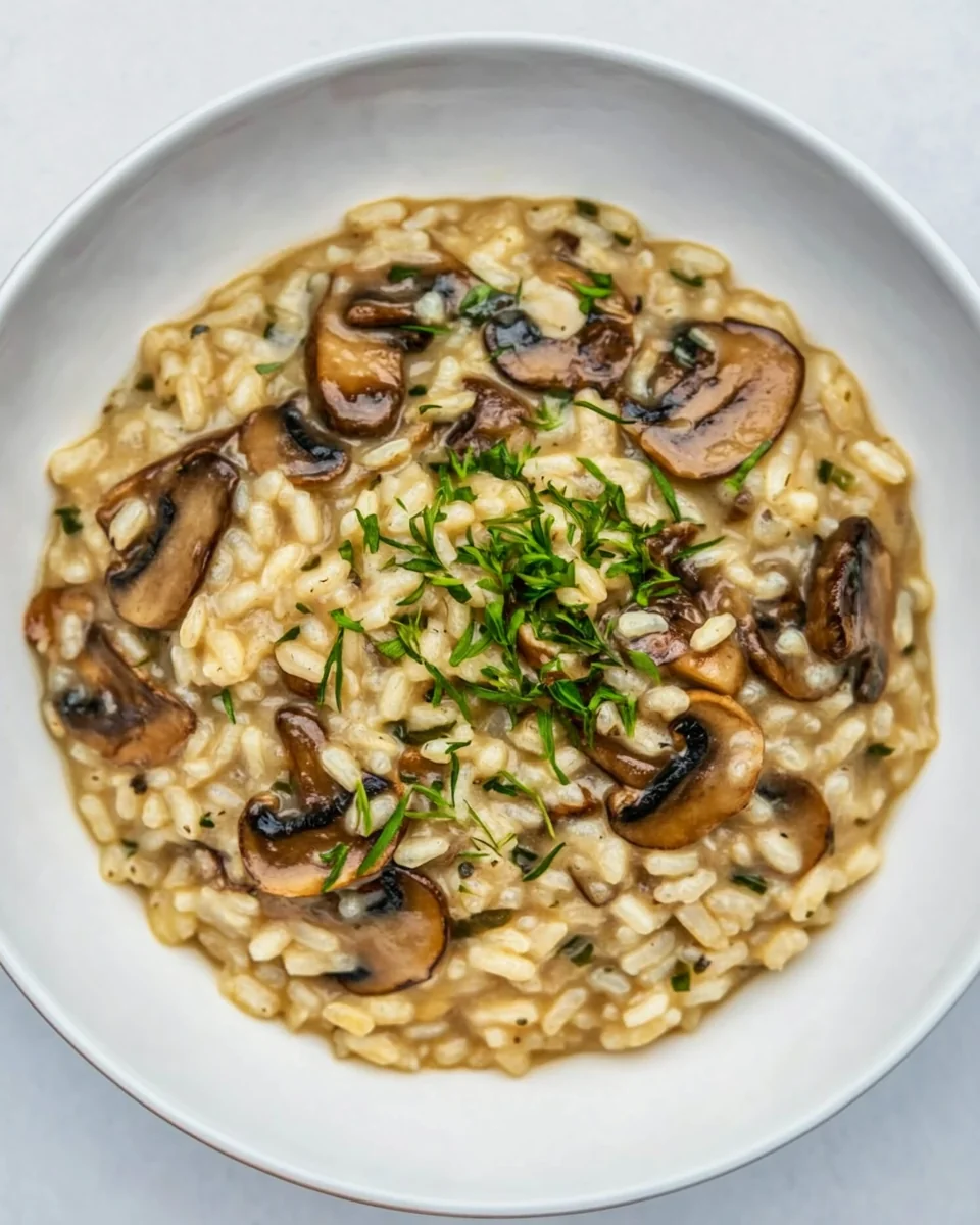 - To serve, garnish your Creamy Mushroom Risotto Made From Scratch with additional Parmesan cheese and a sprinkle of fresh herbs, such as parsley or thyme, for a pop of color and freshness.