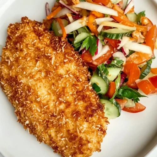 Crispy Coconut Chicken with Fresh Thai Salad offers a delightful blend of flavors and textures that is perfect for any meal. This dish combines the crunchy exterior of coconut-crusted chicken with the fresh, vibrant ingredients of a Thai salad. The sweetness of the coconut complements the savory notes of the chicken, creating a dish that is both satisfying and refreshing. Ideal for weeknight dinners or family gatherings, this recipe caters to all ages, making it a versatile choice for any occasion. The standout qualities of Crispy Coconut Chicken with Fresh Thai Salad include its ease of preparation, colorful presentation, and the ability to customize the salad with your favorite vegetables.