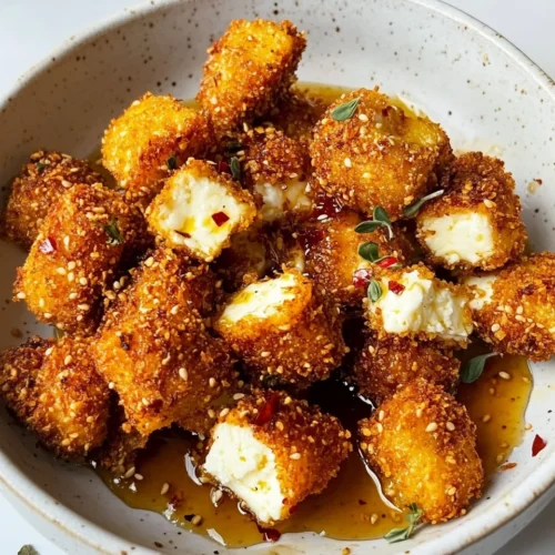Crispy Halloumi Nuggets with Sweet Hot Honey is a sensational dish that perfectly combines savory and sweet flavors. Halloumi, a cheese known for its firm texture and ability to hold its shape when cooked, is transformed into delightful nuggets that are crispy on the outside and warm on the inside. The addition of sweet hot honey elevates these nuggets to a new level, offering a tantalizing kick that balances the richness of the cheese. This dish is ideal for various occasions, from casual weeknight dinners to gatherings with friends and family. Whether served as an appetizer or a main course, Crispy Halloumi Nuggets with Sweet Hot Honey are sure to impress. Their unique flavor profile and appealing texture make them a favorite among both cheese lovers and adventurous eaters.