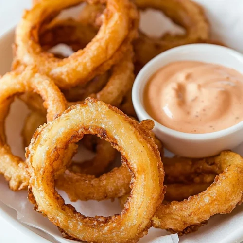Crispy Onion Rings With Delicious Dipping Sauce are the perfect addition to any meal, offering a delightful crunch with every bite. This dish features golden-brown onion rings that are crispy on the outside and tender on the inside, complemented by a tangy and flavorful dipping sauce. Ideal for family gatherings, game day snacks, or a weeknight treat, these onion rings can elevate any dining experience. The unique blend of spices enhances the natural sweetness of the onions, making them irresistible, whether served as an appetizer or a side dish. The standout quality of this recipe lies in its simplicity and the satisfying texture that keeps everyone coming back for more.