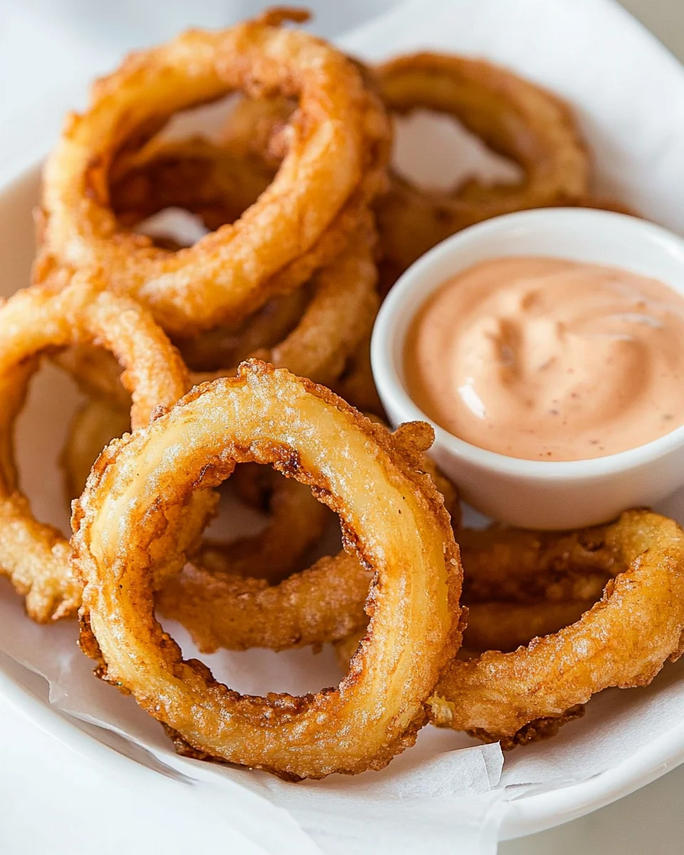 Your Crispy Onion Rings With Delicious Dipping Sauce pair wonderfully with burgers, sandwiches, or salads. They also make a great appetizer at parties or gatherings, serving as a delightful crunch alongside your favorite dishes.