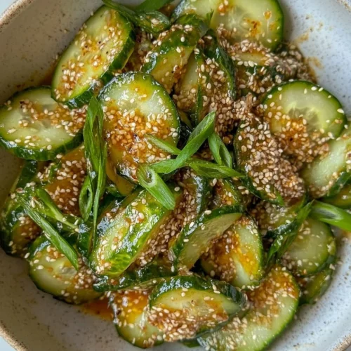 Crunchy Fresh Cucumber Salad is a vibrant and refreshing dish that brings a burst of flavor and texture to any table. This salad is not only visually appealing with its crisp green cucumbers, but it also offers a delightful crunch that is sure to please. Perfect for weeknight meals, picnics, or family gatherings, this salad is a fantastic choice for those who appreciate light and healthy eating. The combination of fresh ingredients and zesty dressing elevates this dish, making it a standout option for anyone looking to add a bit of brightness to their meals. Whether served as a side dish or a light main course, Crunchy Fresh Cucumber Salad is a versatile and crowd-pleasing option for any occasion.