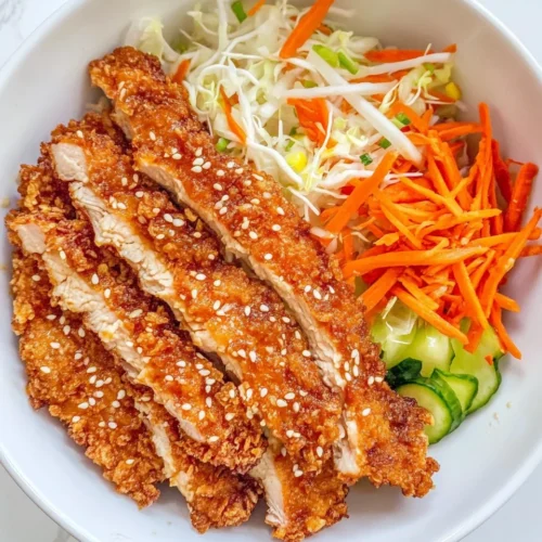 The flavor-packed and crispy Delicious Homemade Kimchi Chicken Katsu is a delightful twist on the classic Japanese dish. This dish features tender chicken fillets coated in a crunchy breadcrumb crust, enhanced with the spicy and tangy notes of kimchi. Ideal for weeknight meals or family gatherings, this recipe is sure to impress both your taste buds and your guests. The standout quality of this dish lies in the unique combination of flavors; the savory chicken paired with the fermented zest of kimchi creates a harmonious balance. Whether served with rice, salad, or a dipping sauce, Delicious Homemade Kimchi Chicken Katsu is versatile enough to please any palate.