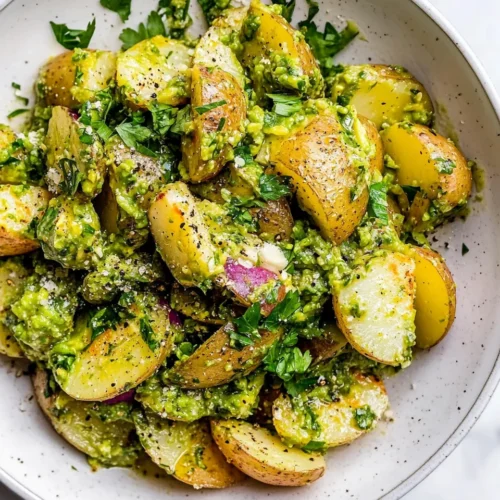 The Fresh and Creamy Avocado Potato Salad is a refreshing twist on the classic potato salad, combining the creamy richness of ripe avocados with tender potatoes for a delightful dish that is perfect for any occasion. This salad stands out with its vibrant green hue and rich flavors, making it an excellent choice for family gatherings, picnics, or as a side for weeknight meals. The smooth texture of the avocado complements the hearty potatoes, creating a satisfying dish that appeals to both children and adults. Packed with nutrients and providing a comforting feeling, this dish is not only delicious but also a healthier alternative to traditional creamy salads.