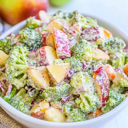 The Fresh Broccoli Apple Salad Recipe is a delightful combination of crisp, crunchy broccoli and sweet, juicy apples. This vibrant salad is not only visually appealing but also packed with nutrients that make it a perfect choice for health-conscious individuals. Ideal for weeknight meals or family gatherings, this salad brings a refreshing twist to any table. The combination of textures and flavors—from the earthy broccoli to the tart sweetness of apples—creates a delightful balance that is both satisfying and invigorating. Whether served as a side dish or a light main course, the Fresh Broccoli Apple Salad Recipe is sure to impress guests of all ages with its bright colors and robust flavors.