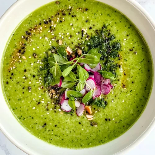 Fresh Green Gazpacho For A Refreshing Summer Meal is a vibrant and invigorating dish that is perfect for hot summer days. This cold soup not only showcases the fresh flavors of seasonal vegetables but also serves as a healthy, light meal option. The brilliant green hue of this gazpacho is derived from a medley of ingredients, including cucumbers, bell peppers, and fresh herbs, making it a feast for the eyes as well as the palate. Ideal for family gatherings, weeknight dinners, or even a casual brunch, this dish appeals to a wide audience. The standout qualities of Fresh Green Gazpacho include its quick preparation time, refreshing taste, and versatility in serving options, ensuring it remains a favorite during the warmer months.