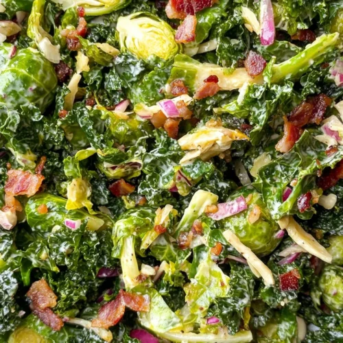 The Fresh Kale and Brussels Sprouts Salad with Savory Dressing is a vibrant and nutritious dish that brings together the earthy flavors of kale and the slightly nutty taste of Brussels sprouts. This salad is perfect for those seeking a healthy and satisfying meal option, whether for a weeknight dinner or a family gathering. The combination of textures, from the crisp kale to the tender Brussels sprouts, creates a delightful eating experience. The savory dressing enhances the natural flavors of the greens, making it a standout choice for anyone who enjoys fresh, wholesome ingredients. Not only is this salad packed with vitamins and minerals, but it also caters to a variety of dietary preferences, making it an excellent option for everyone at the table.