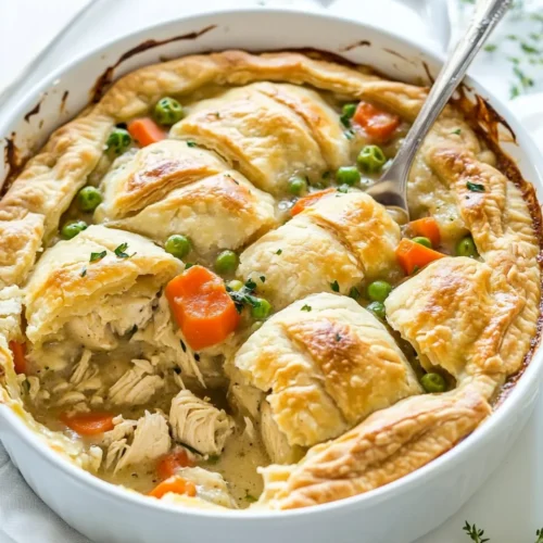 This Homemade Chicken Pot Pie Casserole For Cozy Nights stands out for several compelling reasons. Firstly, the taste is simply unbeatable. The combination of tender chicken, mixed vegetables, and a rich, savory sauce creates a flavor profile that is both satisfying and comforting, making it a hit at any dinner table. Secondly, the ease of preparation is a major advantage. With straightforward steps and accessible ingredients, even novice cooks can whip up this delightful casserole without any hassle. Thirdly, the texture of the dish is a winning element; the creamy filling contrasts perfectly with the flaky crust, providing a delightful mouthfeel that keeps you coming back for more. Lastly, this casserole is incredibly versatile. You can customize it by adding your favorite vegetables or adjusting the seasonings to suit your taste, ensuring that it can be enjoyed repeatedly without ever feeling repetitive.