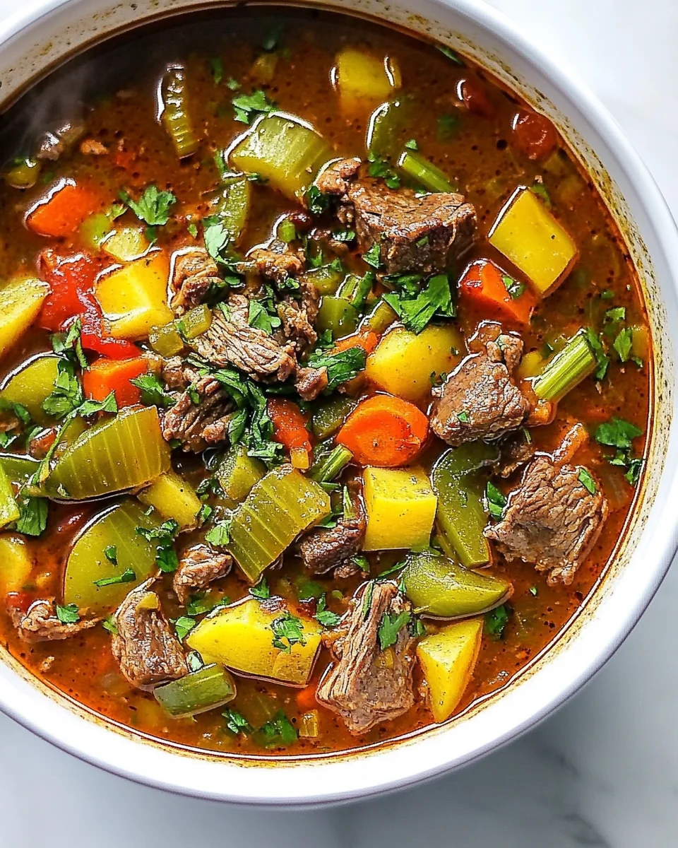 - To elevate the presentation, garnish each bowl with freshly chopped herbs, adding a pop of color and an aromatic finish to your Homemade Hearty Vegetable Beef Soup.