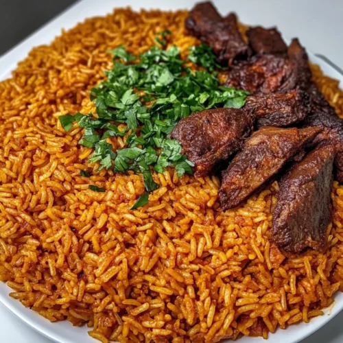 Oven-Baked Jollof Rice: A Flavorful One-Pot Comfort Dish is a beloved staple in many West African households, renowned for its rich flavors and vibrant colors. This dish combines the essential ingredients of rice, tomatoes, and spices, creating a comforting meal that resonates with both tradition and modern culinary creativity. Ideal for weeknight dinners or family gatherings, this one-pot wonder is not only easy to prepare but also packed with flavors that appeal to a wide audience. The standout qualities of this recipe include its versatility, allowing for the addition of various proteins and vegetables, and its ability to be made in large quantities, making it perfect for meal prep or serving a crowd. Every spoonful of Oven-Baked Jollof Rice promises a burst of flavor, making it a dish that everyone will enjoy.