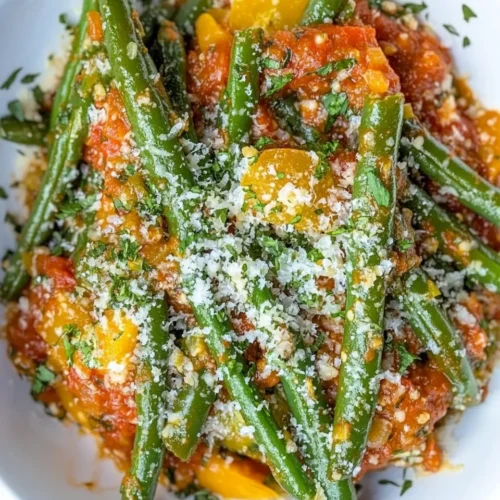 Savory Green Beans With Fresh Tomato Sauce is a vibrant dish that harmoniously blends the crispness of fresh green beans with a rich, homemade tomato sauce. The flavors are bright and refreshing, making it perfect for a variety of occasions, from casual weeknight dinners to elegant family gatherings. This dish appeals to a wide audience, especially those seeking a healthy, vegetarian option packed with nutrients. The standout quality of Savory Green Beans With Fresh Tomato Sauce lies in its simplicity and the fresh ingredients that elevate everyday dining. With its colorful presentation and mouthwatering taste, this recipe will quickly become a favorite at your table.