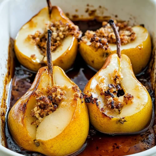The Simple Baked Pears Recipe is a delightful dish that brings the natural sweetness of pears to the forefront, enhanced with warm spices and a touch of sweetness. This recipe is perfect for weeknight meals or family gatherings, offering a comforting dessert that appeals to both children and adults alike. The warm, caramelized flavor of the baked pears creates an inviting aroma that fills your kitchen, making it a fantastic choice for cozy evenings or holiday celebrations. What makes this dish stand out is its versatility; it can be served as a dessert on its own or paired with various accompaniments like yogurt, ice cream, or nuts, elevating the experience further.