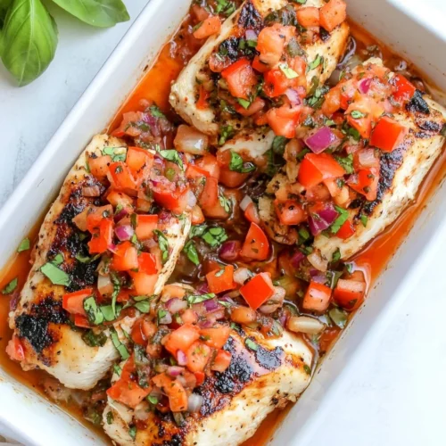 The Simple Bruschetta Chicken Recipe is a delightful dish that combines the savory flavors of grilled chicken with the fresh, vibrant toppings of traditional bruschetta. This recipe is perfect for weeknight meals, family gatherings, or even a casual dinner party. The juicy chicken breast pairs beautifully with the zesty tomato mixture, creating an explosion of flavor in every bite. The standout quality of this dish is its ability to be both comforting and refreshing, making it suitable for various occasions. Whether you’re serving it for a quick weeknight dinner or a more elaborate meal, the Simple Bruschetta Chicken Recipe is sure to impress your guests and satisfy your taste buds.