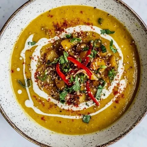 The Simple Curried Leek and Potato Soup is a warm, comforting dish that embodies the essence of home-cooked meals. This creamy soup blends the subtle sweetness of leeks with the earthy flavor of potatoes, all enveloped in a fragrant curry base. Perfect for weeknight dinners and family gatherings, this soup is not only delicious but also nourishing. Its vibrant color and aromatic profile make it an appealing choice for both adults and children alike. Whether served as a starter or a main dish, the Simple Curried Leek and Potato Soup is versatile enough to fit any occasion, from casual lunches to elegant dinners, and is particularly comforting during the colder months.