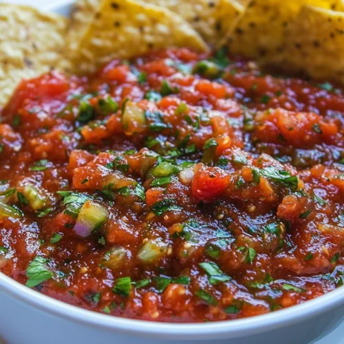 The Simple Roasted Tomato Salsa Recipe is a vibrant and flavorful dish that brings the essence of fresh tomatoes to your table. This salsa blends the rich, smoky flavors of roasted tomatoes with zesty lime and aromatic herbs, making it a perfect addition to various meals. Whether you’re serving it with tortilla chips at a gathering, drizzling it over grilled chicken, or using it as a topping for tacos, this salsa is sure to impress. Ideal for busy weeknight dinners or family-friendly gatherings, its versatility shines through in every bite. The standout quality of the Simple Roasted Tomato Salsa Recipe is its simplicity; a few fresh ingredients combined with minimal effort can create a vibrant dish that bursts with flavor.