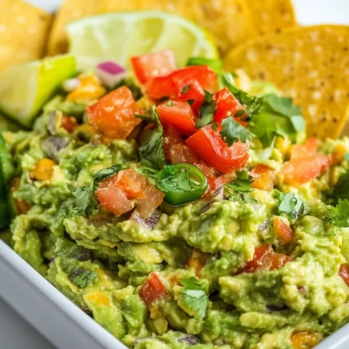 The Simple Spicy Guacamole Recipe is a vibrant and zesty dish that elevates any gathering or meal. It boasts a creamy texture, balanced with a kick of heat that makes it irresistible. Perfect for family-friendly weeknight dinners, this guacamole pairs beautifully with tortilla chips, tacos, or as a topping for grilled meats. Its standout qualities lie in its fresh ingredients and the way it brings people together over shared flavors. Whether you are hosting a party or simply enjoying a quiet evening at home, this Simple Spicy Guacamole Recipe is sure to please everyone at the table.