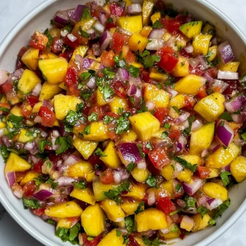 The Spicy Fresh Mango Salsa Recipe is a vibrant and zesty dish that perfectly captures the essence of summer. Bursting with fresh flavors, this salsa combines the sweetness of ripe mangoes with the heat of jalapeños, creating a delightful contrast that is both refreshing and exciting for the palate. Ideal for a variety of occasions, from casual weeknight dinners to festive gatherings, this salsa elevates any meal with its bright colors and bold taste. Whether served as a dip with tortilla chips, a topping for grilled chicken or fish, or a flavorful addition to tacos, the Spicy Fresh Mango Salsa Recipe is a versatile crowd-pleaser that is sure to impress. Its combination of sweet, spicy, and tangy notes makes it a favorite among families, and its simple preparation ensures that anyone can whip it up quickly.