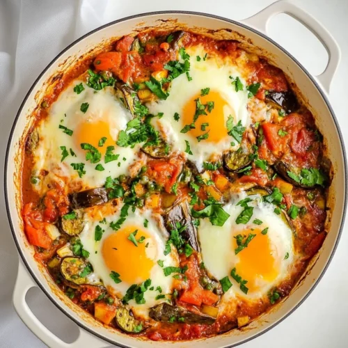 Spicy Homemade Eggplant Shakshuka is a vibrant and hearty dish that combines the rich flavors of eggplant with the comforting elements of a classic shakshuka. This dish is perfect for both casual weeknight dinners and more festive gatherings, making it a versatile addition to any culinary repertoire. The combination of spices, fresh vegetables, and poached eggs creates a delightful balance of flavor and texture. Whether you are looking to impress guests or need a wholesome meal for your family, Spicy Homemade Eggplant Shakshuka caters to all tastes. Its standout qualities include the deep, smoky notes of roasted eggplant, the warmth of spices, and the satisfying richness of perfectly cooked eggs, making it a dish that everyone will love.