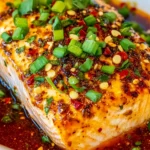 A flavorful and juicy salmon dish enhanced with spicy chili crisp and rich butter.