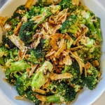 6. In a large mixing bowl, combine crispy noodles, roasted broccoli, chopped herbs, and lemon juice.