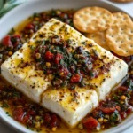 A creamy, baked feta cheese that melts beautifully, creating a warm and savory dip that pairs perfectly with crispy crackers.