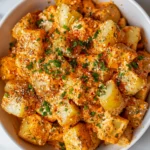 7. Transfer the potatoes to a mixing bowl and pour the dressing over them. Toss gently to coat.