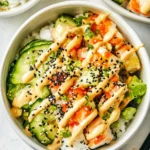 A vibrant and delicious way to enjoy the flavors of sushi without the need for rolling, featuring fresh vegetables, creamy avocado, and crab over sushi rice.