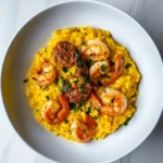 The perfect dish to warm your heart and satisfy your cravings on a chilly evening, combining savory chorizo with fresh prawns for a rich and creamy texture.