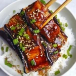 A vibrant dish showcasing the rich texture of aubergine paired with a sweet-savory teriyaki glaze, perfect for a quick weeknight meal.
